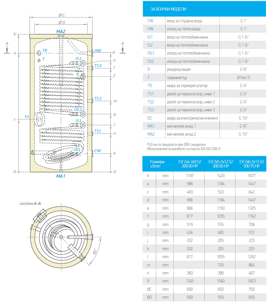 200 литров бoйлер с две двойни серпентини с увеличена площ.