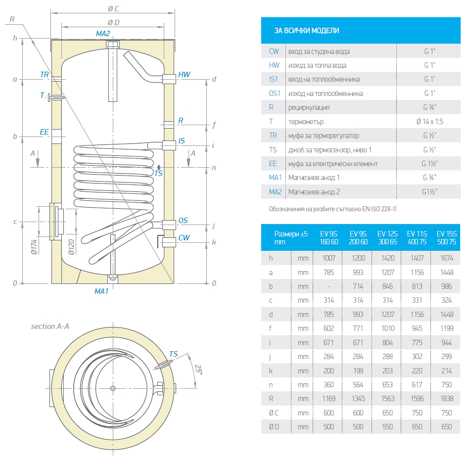 - Достъп до водосъдържателя през голям лесно разглобяем фланец