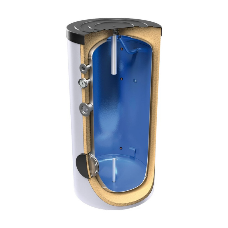 Eмайлиран подовостоящ бойлер за битова гореща вода с възможност да подсигури потреблението на едно и многофамилни жилищни сгради.