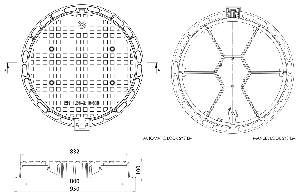 Чугунен капак Ø800 D400 /P/ вентилиран H100