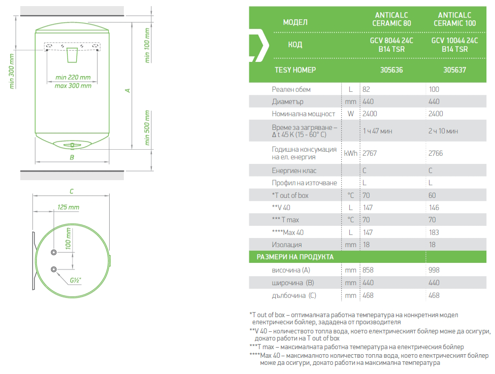 | Номинален обем (л.) | 80 |