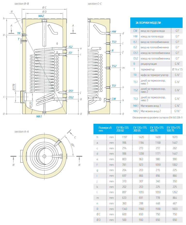 | Макс. мощност на серпентината 60-80°C | 45 / 41 kW |